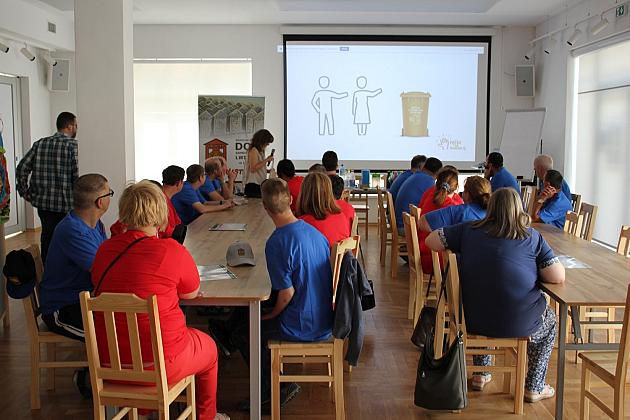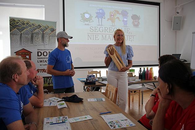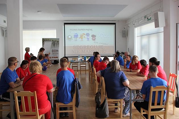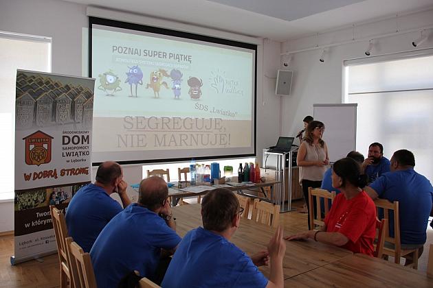Wczoraj (5.08) społeczność Środowiskowego Domu Samopomocy "Lwiątko" w Lęborku odwiedziła Klub Osiedlowy BAZA. Podczas wizyty goście wysłuchali bardzo ciekawej eko-pogadanki, podczas której rolę przewodnika pełniła pani Anna. Uczestnicy spotkania poznali zasady segregacji śmieci, dowiedzieli się na czym polega recykling, w jaki sposób robić zakupy bez generowania zbyt dużych ilości nowych śmieci oraz jak ograniczać ich produkcję w domu. Aby uporządkować nową wiedzę goście rozwiązywali krzyżówki i rebusy. Spotkanie upłynęło w bardzo sympatycznej atmosferze.