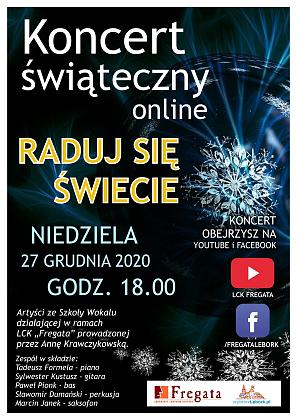Lęborskie Centrum Kultury „Fregata” zaprasza w niedzielę 27 grudnia 2020 roku na transmisję koncertu świątecznego online pod tytułem „Raduj się świecie”. Początek o godzinie 18:00.